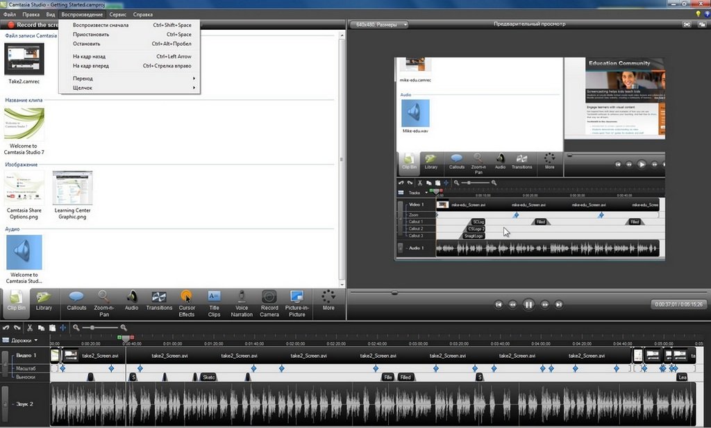 - Camtasia MenuMaker — создание меню и DVD-проектов.