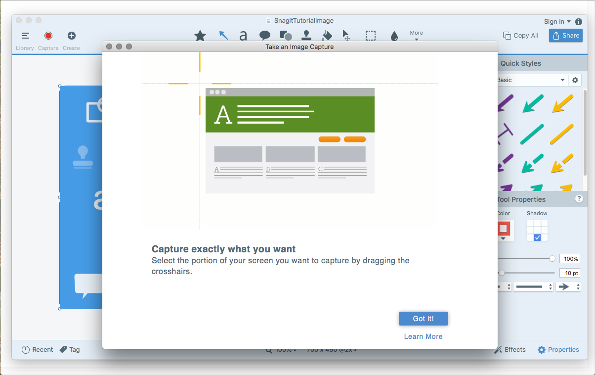 Встроенный редактор Snagit позволяет добавлять стрелки, подписи, шаги, размывать конфиденциальные зоны и собирать инструкции по шаблонам.