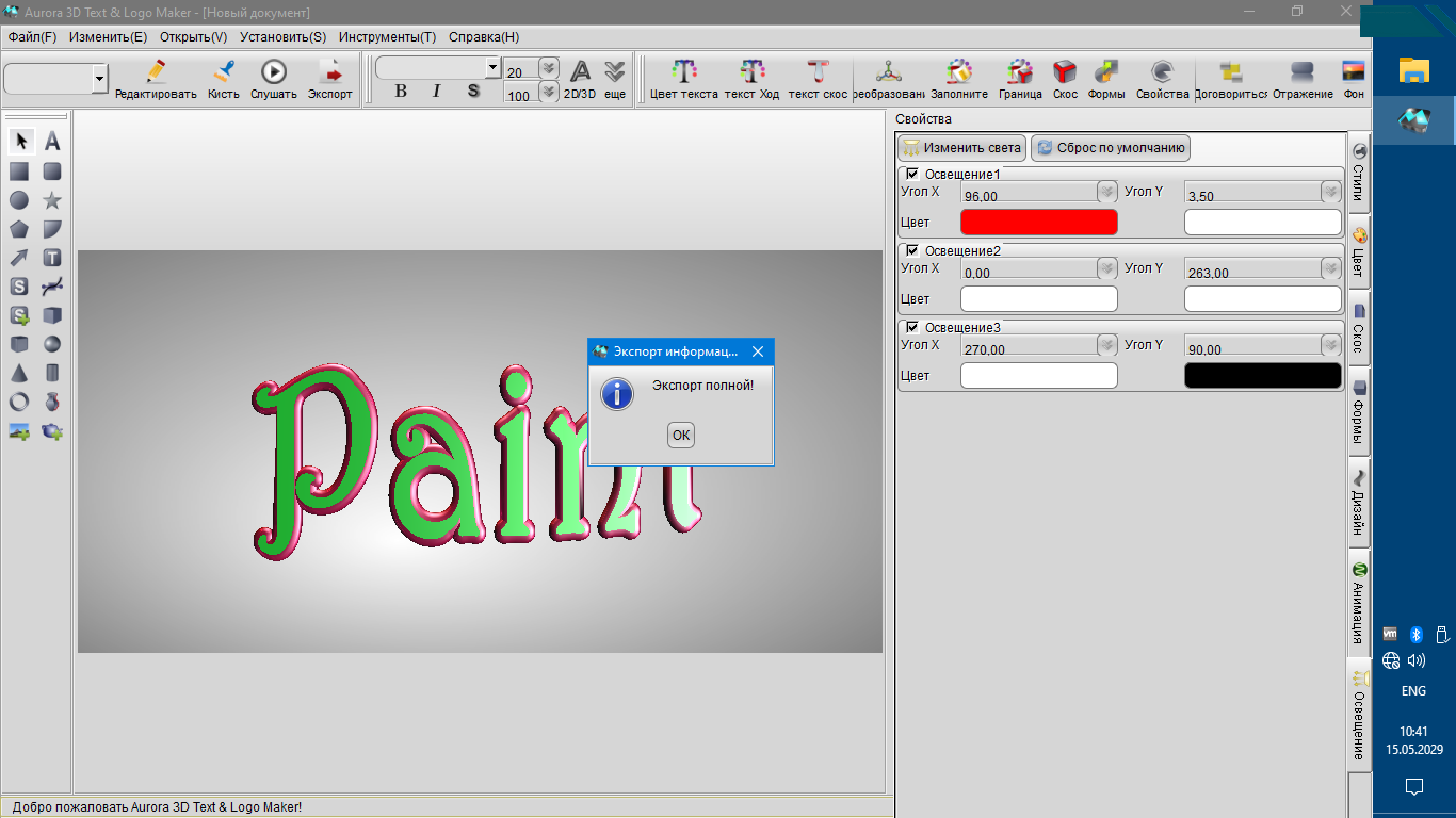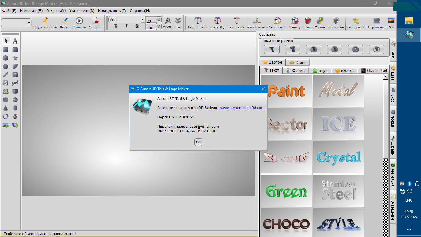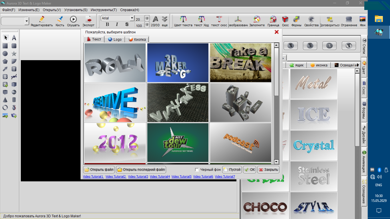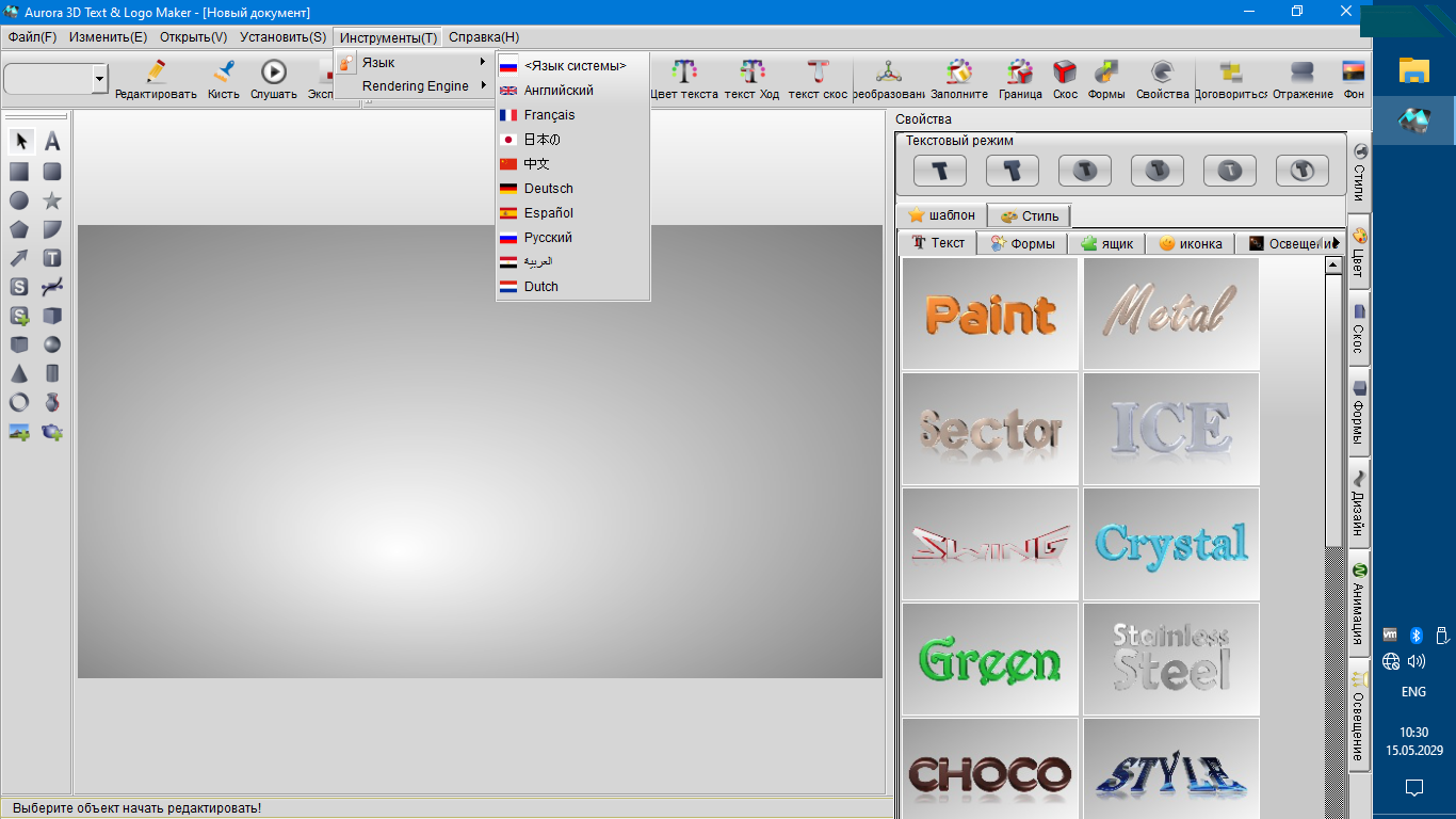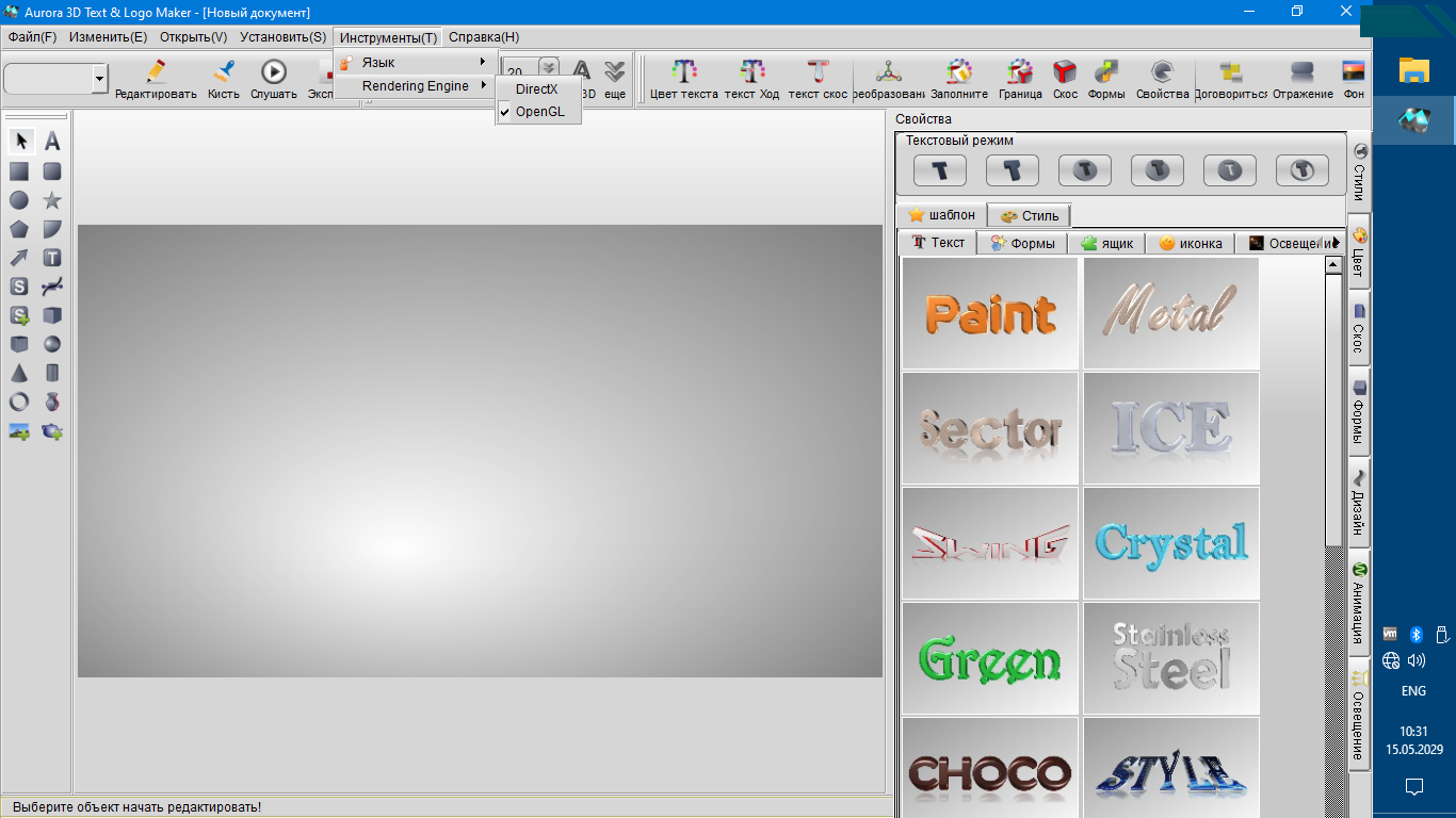 - Создание 3D-текста и логотипов: десятки шаблонов и форм для быстрого старта и ручная настройка объектов.