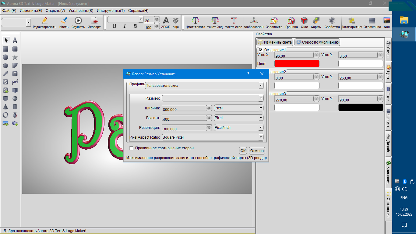 Aurora 3D Text & Logo Maker — профессиональный редактор для создания трёхмерных логотипов, текста и графических элементов. Программа позволяет проектировать 3D-объекты с применением света, теней, рельефа, анимации и эффектов. С её помощью можно быстро создать визуально выразительные логотипы, баннеры, заголовки, кнопки для сайтов и презентаций. Поддерживается экспорт в популярные графические форматы и импорт пользовательских шрифтов и SVG-графики.