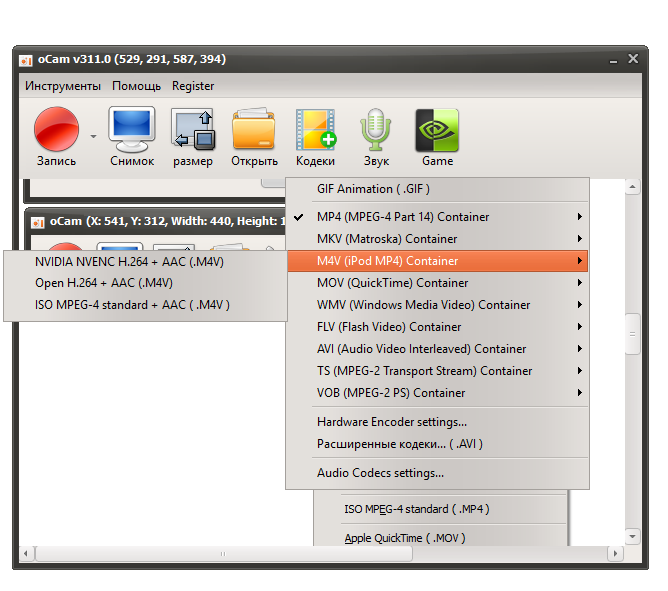 - Запись игр: отдельный игровой режим (Game) с поддержкой DirectX/OpenGL.