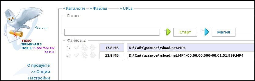 Video Thumbnails Maker используется для создания скриншотов и миниатюр из видеофайлов. Программа автоматически создаёт раскадровки и объединяет их в один лист, добавляя служебную информацию о файле, время кадров и водяные знаки. Поддерживаются все форматы, для которых в системе установлены кодеки.