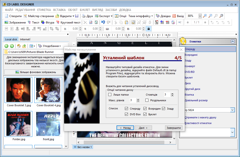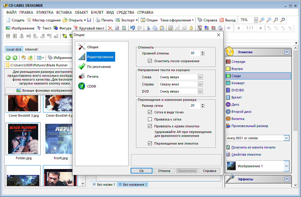 - Любые типы этикеток: диски CD/DVD/BD, обложки и вкладыши для jewel-case, коробки DVD/BD, конверты, визиточные диски, прямоугольные форматы, многостраничные буклеты.