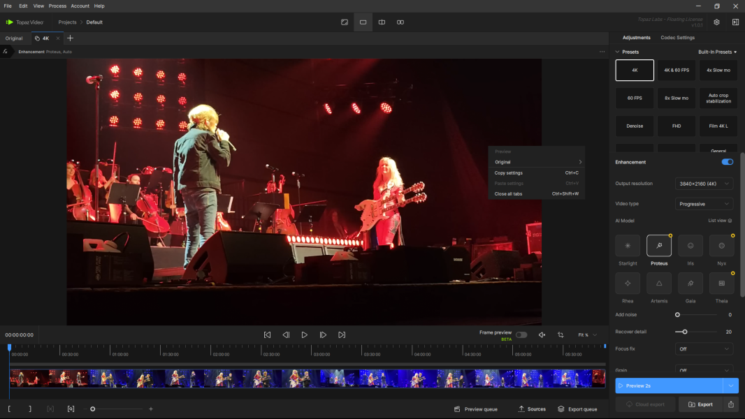Topaz Video – это интеллектуальная программа для улучшения видео с помощью искусственного интеллекта, которая позволяет удалять шум, восстанавливать старые видеозаписи до 4K, корректировать фокус и создавать новые промежуточные кадры для плавного воспроизведения.