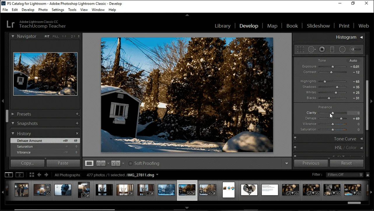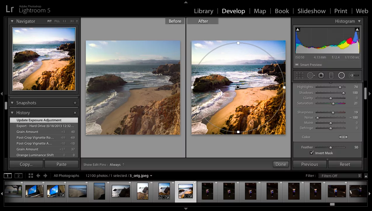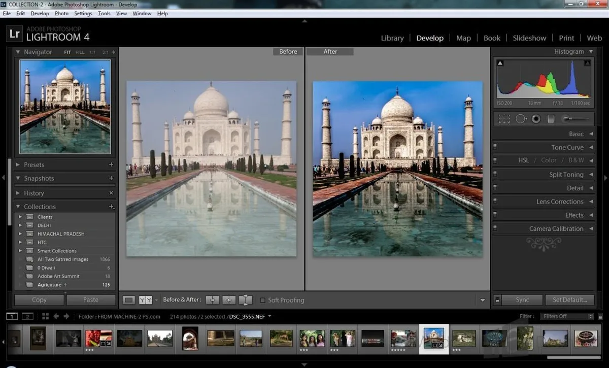 Редактирование фотографий в Lightroom Classic основано на недеструктивном подходе: оригинал изображения никогда не изменяется, а все операции фиксируются в каталоге — это даёт возможность экспериментировать без риска потери качества. Пользователь может легко скорректировать экспозицию, контраст, динамический диапазон, цвет, резкость, шум, геометрию и многое другое. Дополнительно предусмотрена работа с профилями камеры, поддержка HDR, панорамирование, градиентные и радиальные фильтры, маски и локальные инструменты коррекции.