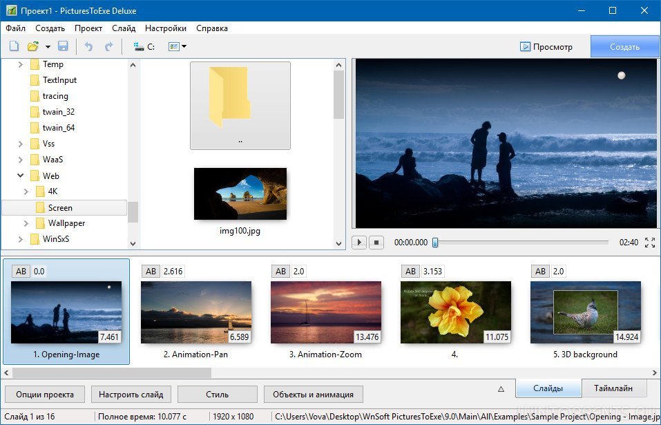 PicturesToExe Deluxe 9.0.18 — создание слайд-шоу, видео, EXE-альбомов и презентаций с эффектами и анимацией