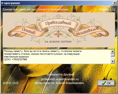 Программа имеет благословение священника Брянской Епархии Русской Православной Церкви.