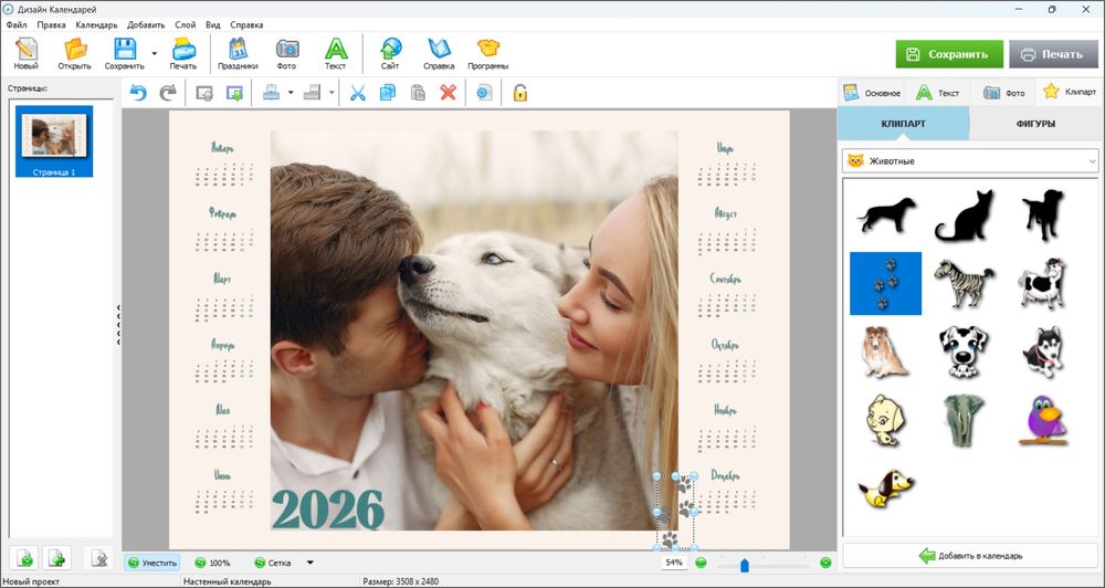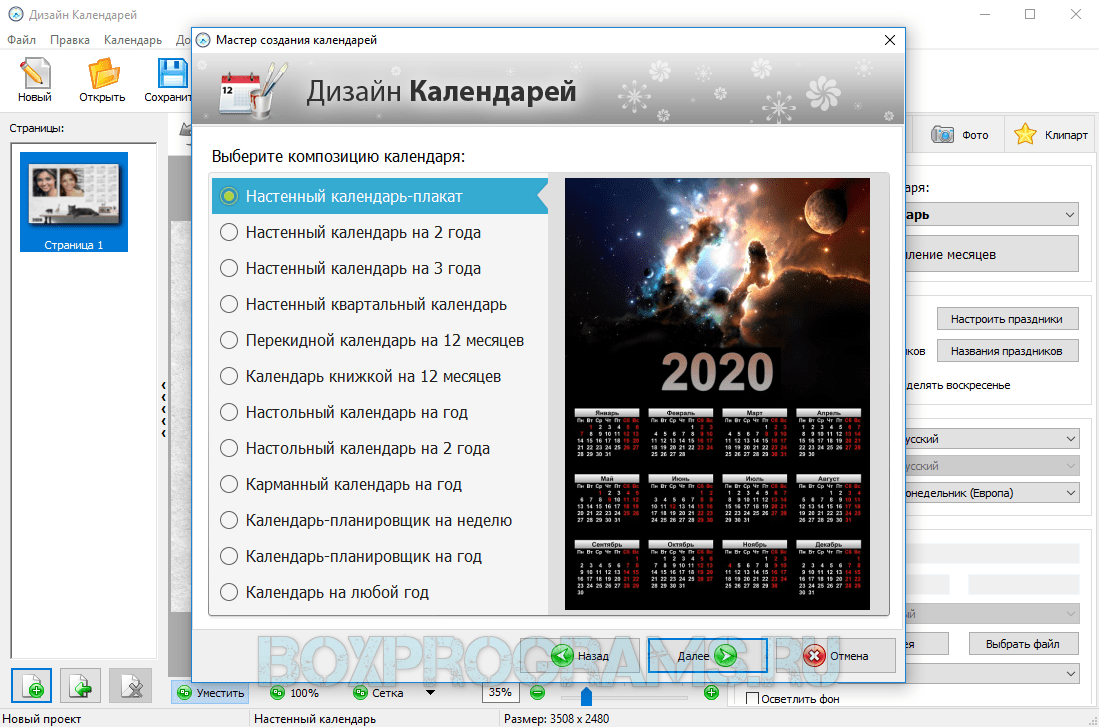 - Интуитивный интерфейс. Понятная структура и пошаговый мастер позволяют создать календарь даже новичку.
