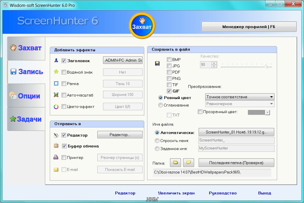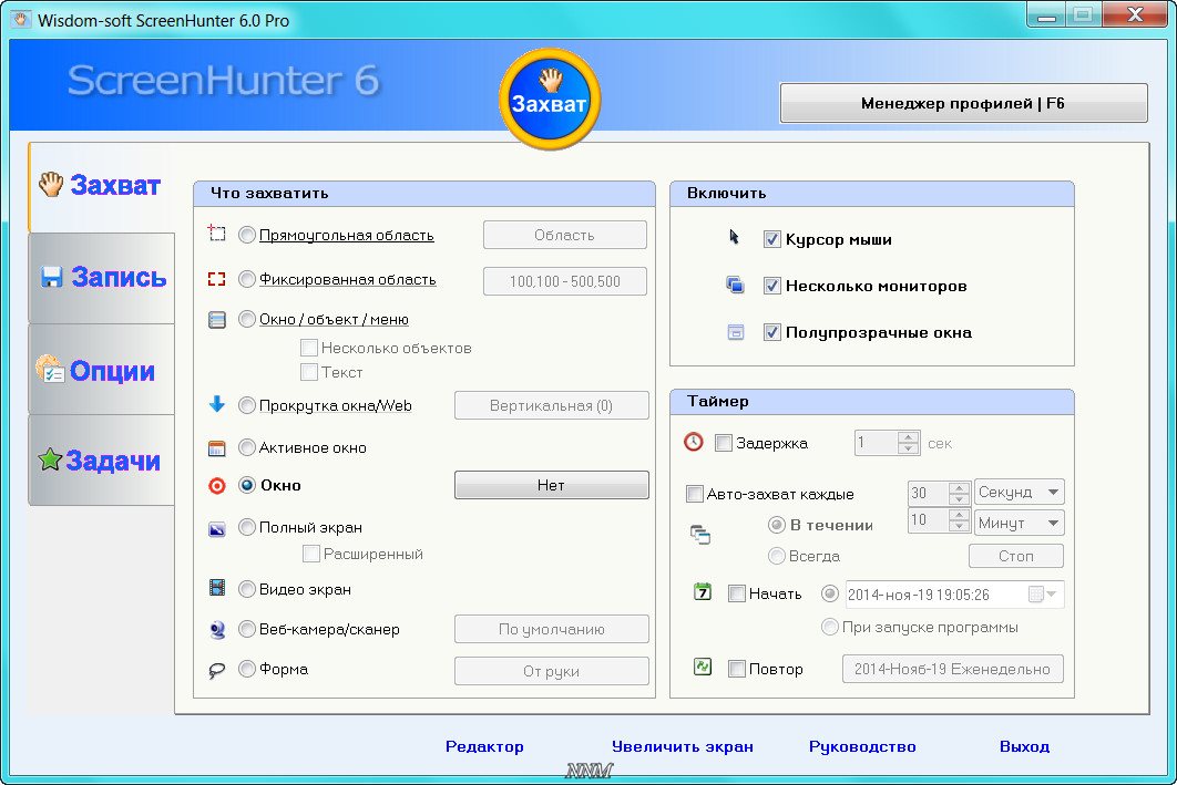 ScreenHunter Pro 6.0.863 — профессиональная программа для захвата экрана любой сложности с уникальной возможностью снимать отдельные объекты внутри окон, текст (даже если копирование заблокировано), DirectX-игры, хранители экрана и даже DOS-программы. Поддерживает захват произвольной формы: прямоугольник, скруглённый прямоугольник, эллипс, многоугольник, свободный контур, а также автоскроллинг веб-страниц и длинных документов. Встроенный редактор позволяет мгновенно добавлять стрелки, текст, рамки, водяные знаки, размытие и эффекты прозрачности. Программа работает с горячими клавишами, автоматически меняет размер снимков, добавляет бордюры, отправляет по email и сохраняет в любые форматы. Идеально подходит для создания уроков, документации и презентаций — всё быстро, удобно и на русском языке.