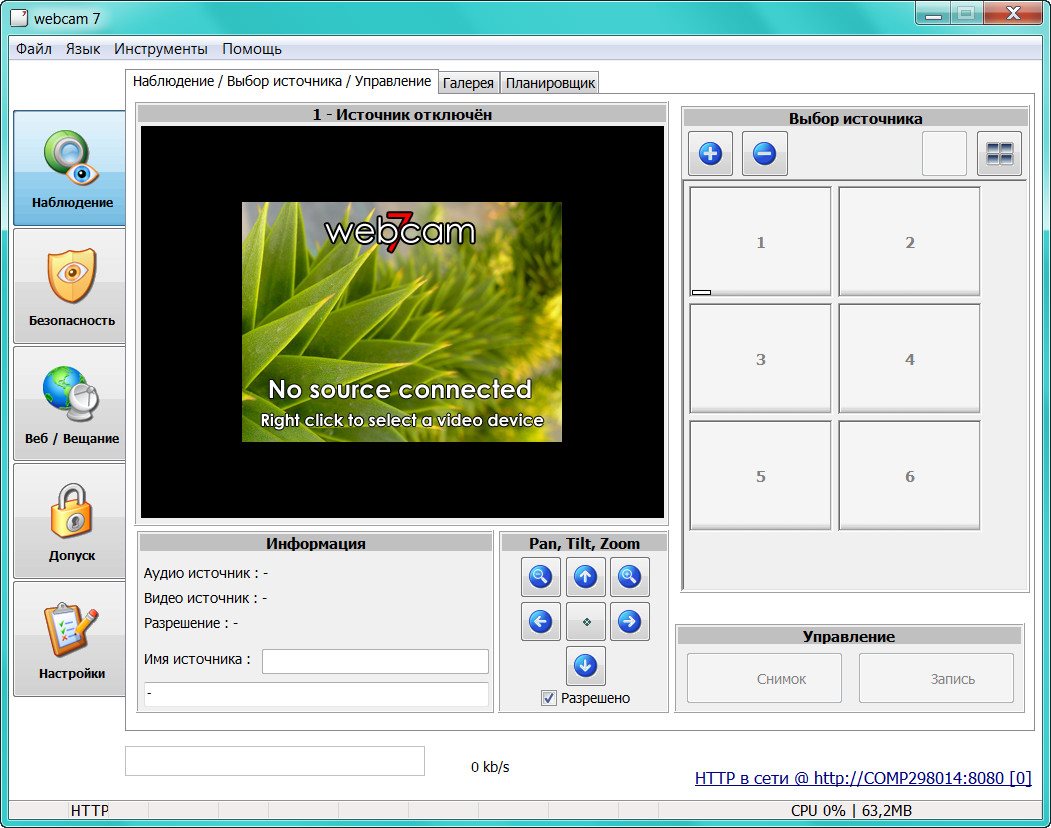 - Поддержка до 10 веб-камер и IP-камер одновременно