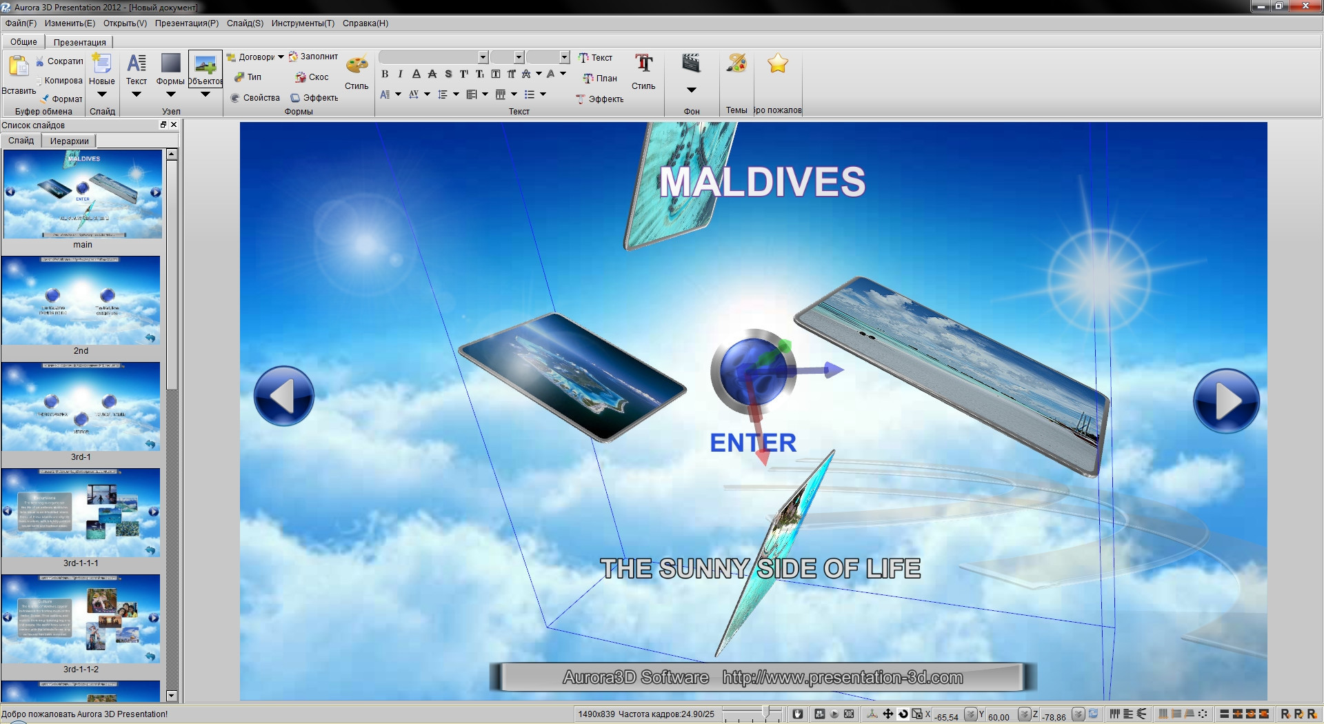 Aurora 3D Presentation 2012 v13.05.03 — мощный и удобный инструмент для создания интерактивных 3D-презентаций бизнес-класса с использованием готовых шаблонов, стилей, 3D-эффектов и анимации без необходимости изучения сложных программ вроде Flash, After Effects или Photoshop. Эта программа позволяет быстро добавлять текст, изображения, видео, 3D-модели, таблицы данных и графики, выбирая из множества вариантов отображения включая навигацию, изображение стены, столы и интерактивные элементы для динамичной подачи материала. Благодаря простому управлению с интуитивными манипуляторами вы сможете применять специальные 3D-эффекты вроде стекла, металла, отражений, градиентов и частиц, делая презентации визуально потрясающими и профессиональными всего за несколько кликов. Aurora 3D Presentation поддерживает полную интерактивность с триггерами событий, связями между объектами и обновлением контента в реальном времени без создания множества слайдов, а также работу с сенсорными экранами и пультами дистанционного управления для живых выступлений. Программа идеально подходит для бизнеса, маркетинга и образования, экономя время и деньги на дизайн и анимацию, превращая обычные идеи в яркие 3D-презентации с поддержкой экспорта в видео или исполняемые файлы.