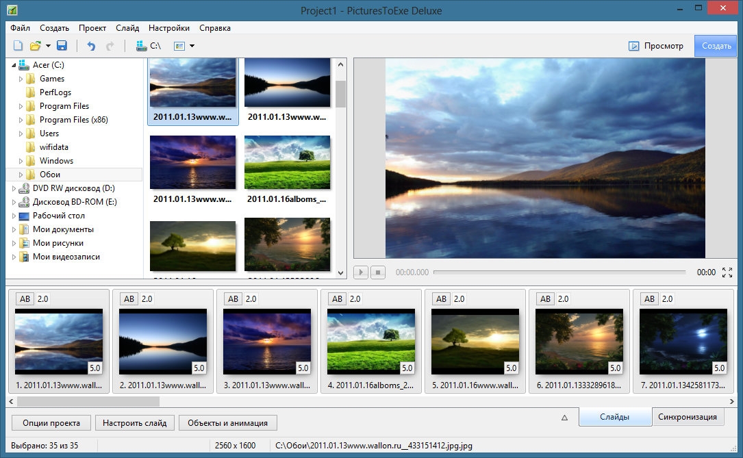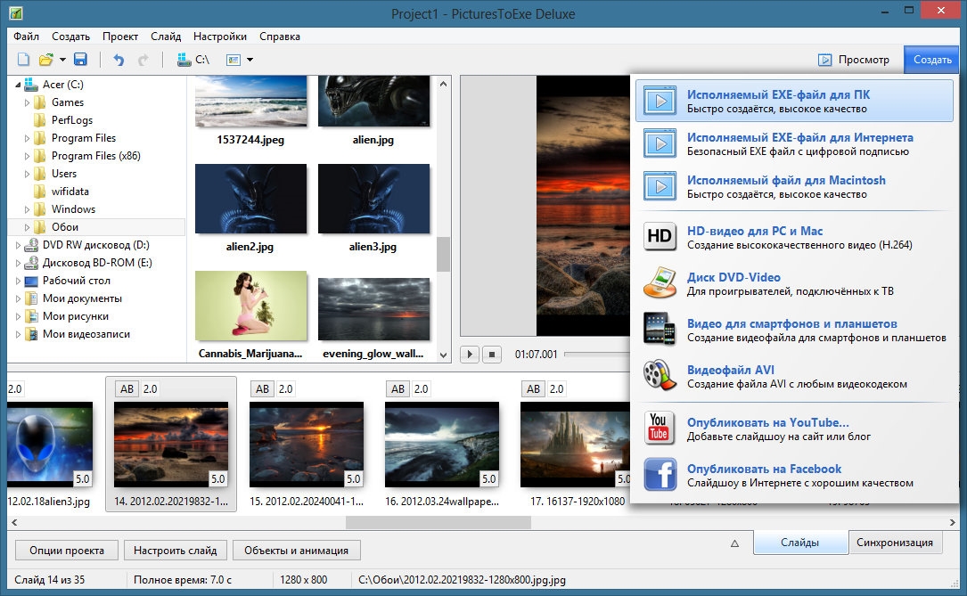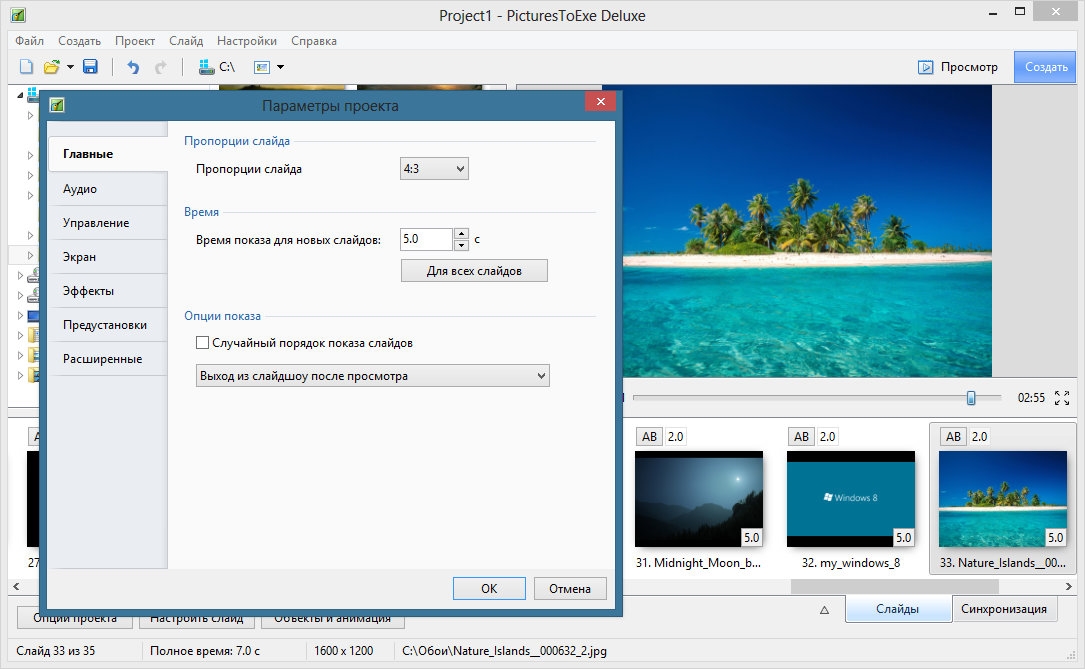 WnSoft PicturesToExe Deluxe v7.0.7 — программа для создания слайд-шоу из фотографий и видеоклипов с поддержкой 3D-эффектов, панорамирования, зума и вращения объектов, позволяющая собирать презентации в один исполняемый EXE-файл для Windows или Mac без необходимости установки дополнительных плееров. Русскоязычный интерфейс, добавление нескольких аудиодорожек с фоновой музыкой в MP3, WAV, OGG, WMA и голосовыми комментариями к слайдам, синхронизация показа с музыкой по временной шкале, кинематографические 3D-переходы включая Flip 3D и Swap 3D, иерархическая система объектов для сложной анимации, запись DVD-дисков с меню, экспорт в HD-видео H.264 для FullHD 1080p, публикация на YouTube и Facebook, защита паролем или сроком действия обеспечивают полный цикл работы от импорта файлов до готового проекта. Программа поддерживает входные форматы JPEG, GIF, PNG, BMP для изображений, MP3, WAV, OGG, WMA для аудио, AVI, MOV, MPG, MP4, FLV, DivX, XviD, WMV для видео, использует аппаратное ускорение для плавного воспроизведения, мгновенный предпросмотр в реальном времени и работает на Windows XP/Vista/7 в 32-битных и 64-битных версиях с минимальными системными требованиями.