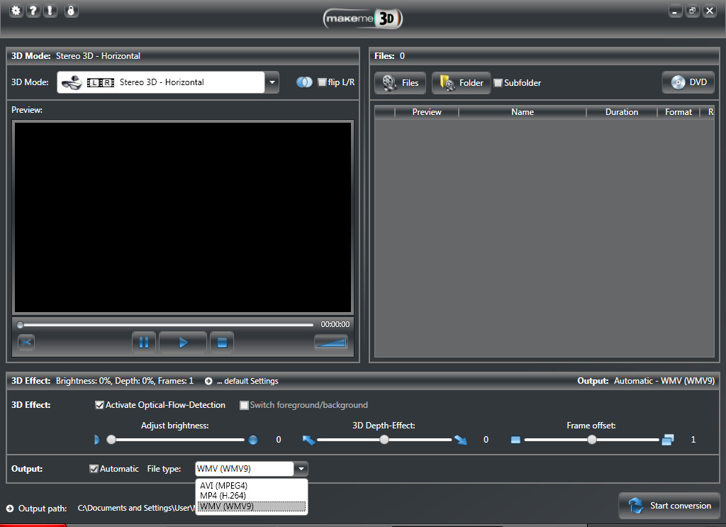 Engelmann Media MakeMe3D 1.2.12.618 — программа для преобразования обычных 2D-видео в 3D-форматы с использованием алгоритмов распознавания объектов и анализа движения, поддерживающая импорт из видео-DVD, AVI, WMV, MP4, 3GP, MPG, TS и экспорт в AVI, MPG, MP4, WMV с автоматической адаптацией разрешения под устройства вроде iPad, PlayStation PS3 или Xbox 360. Английский интерфейс, пакетная обработка нескольких файлов одновременно, ручная настройка параметров вывода включая вертикальный или горизонтальный режим, яркость, глубину эффекта и кадрирование, аппаратная поддержка анаглифных очков красный/голубой, красный/синий, зеленый/пурпурный, желтый/голубой, технологии Shutter с NVIDIA 3D Vision и 120 Гц мониторами, поляризационных очков с совместимыми ноутбуками и мониторами делают программу инструментом для получения объёмного видео из плоских фильмов без потери качества. Программа работает на Windows XP/Vista/7 в 32-битных системах, требует .NET Framework 3 и минимум 256 МБ оперативной памяти, обеспечивает совместимость с различными 3D-устройствами для просмотра результатов с подходящими очками или экранами.