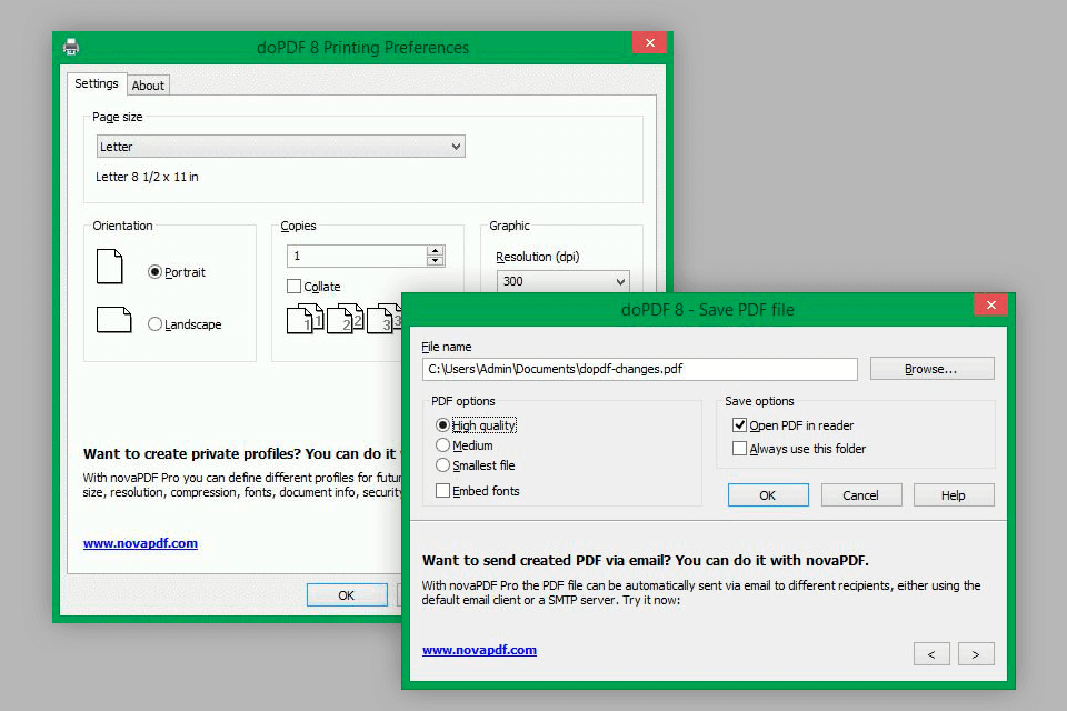 CutePDF Writer также является виртуальным принтером, но требует установки дополнительных компонентов и иногда работает медленнее. doPDF интегрируется легче и быстрее.