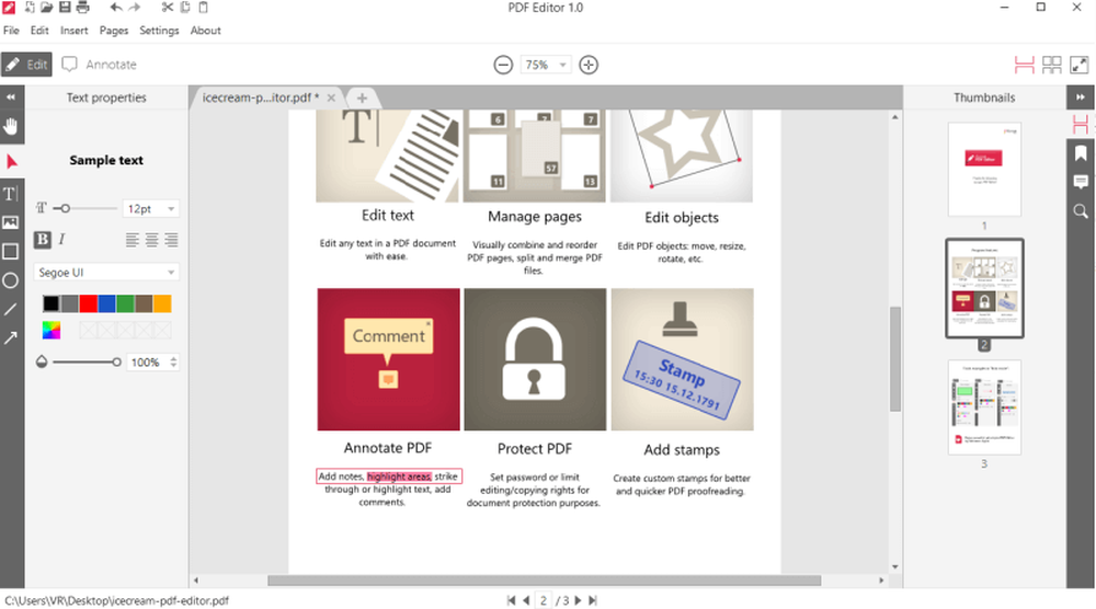 Основные функции Icecream PDF Editor