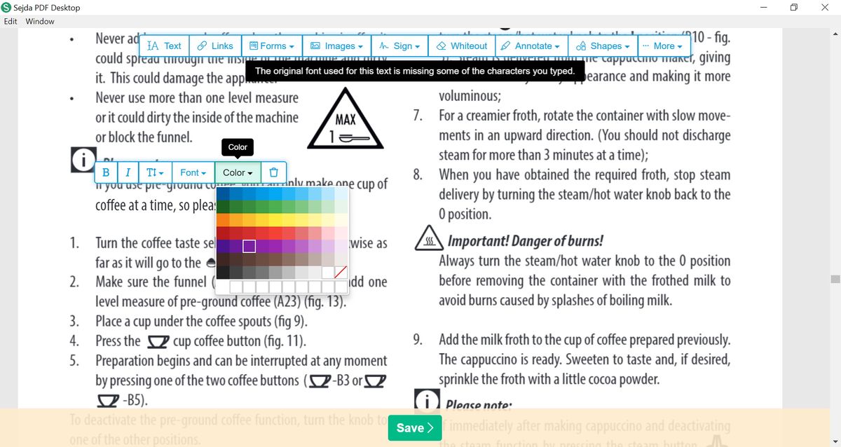 Sejda позволяет редактировать текст непосредственно внутри PDF, что делает его похожим на профессиональные редакторы. Редактирование включает: