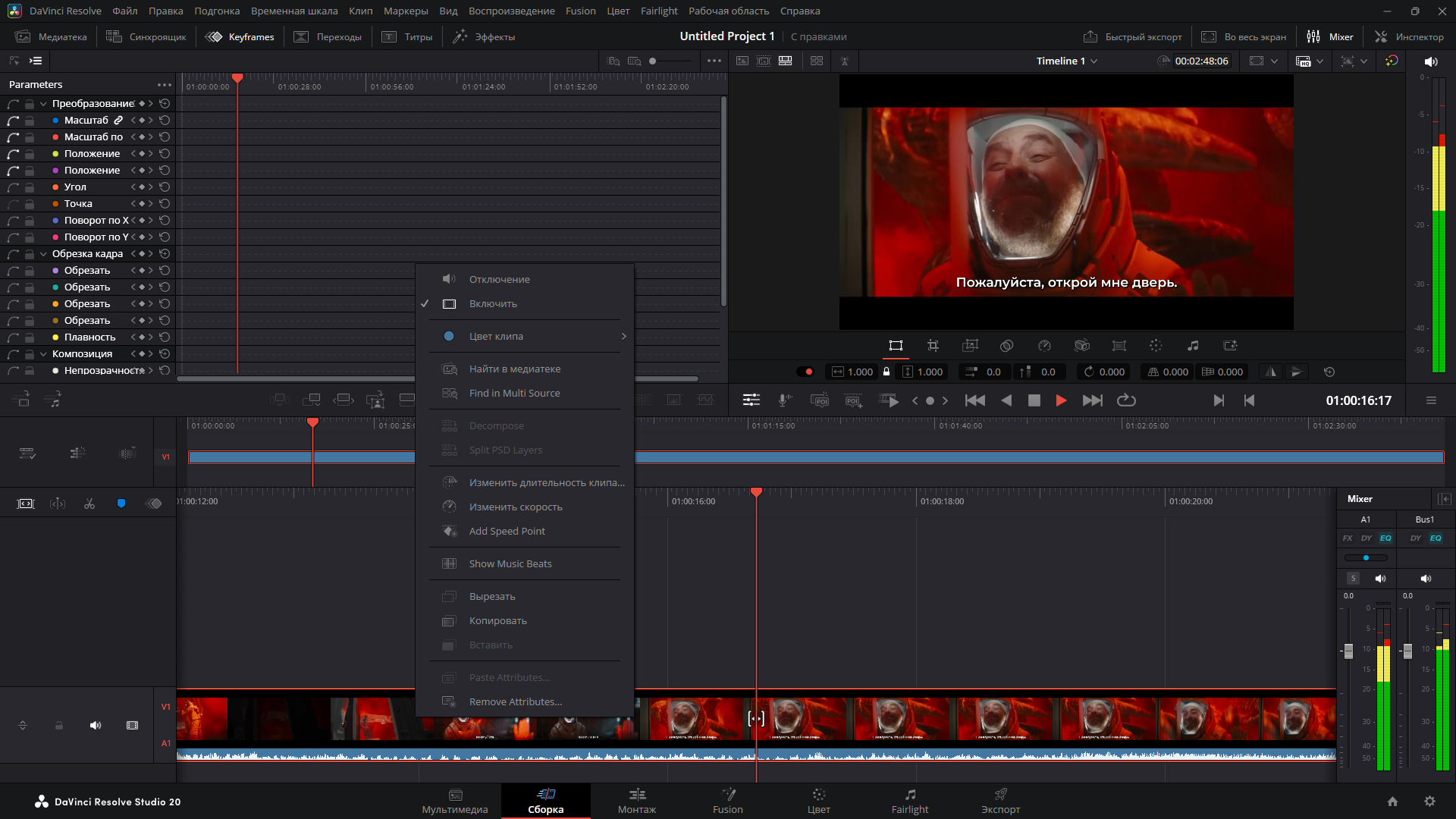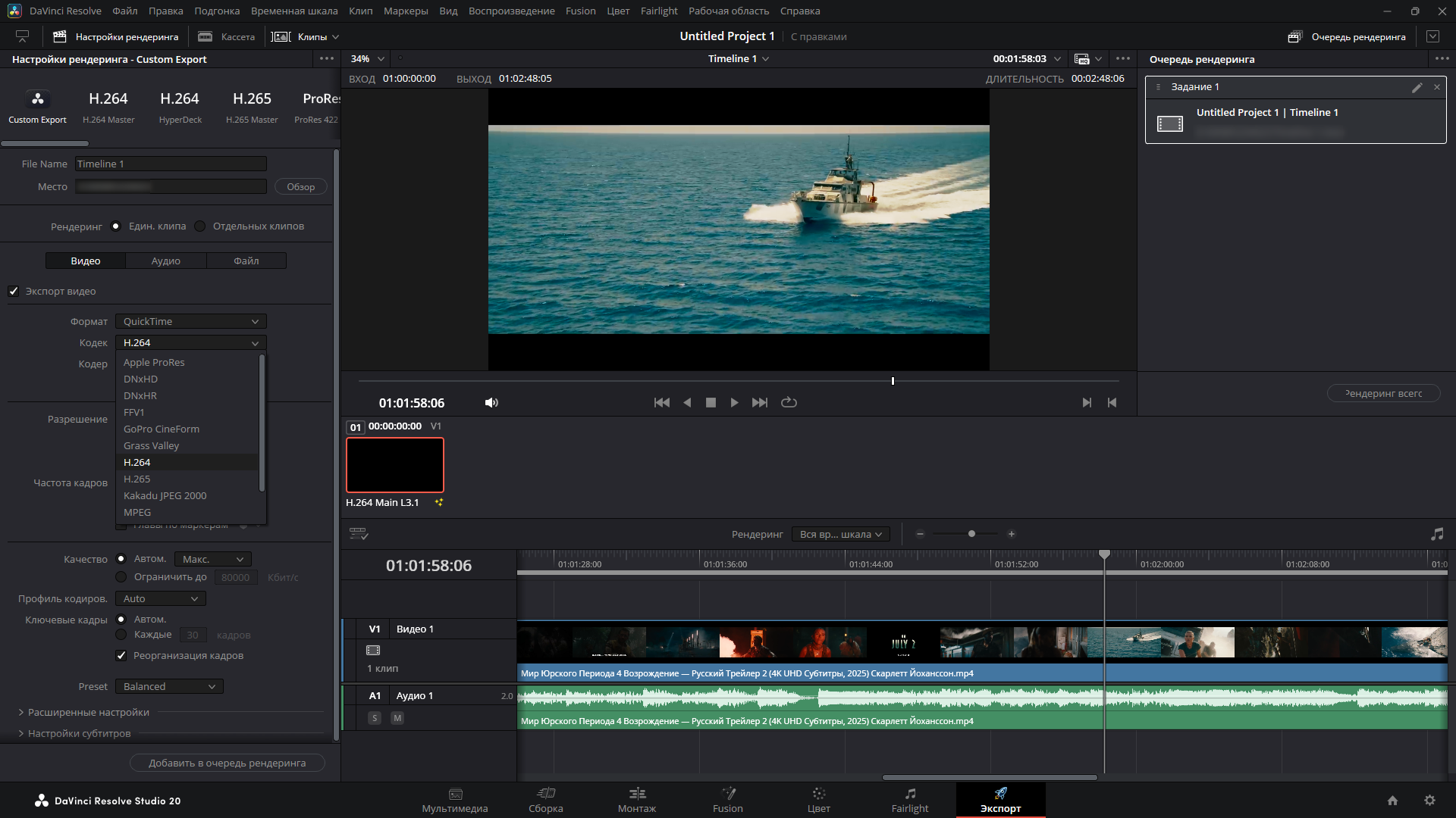 - Полный цикл постпродакшена: монтаж + цвет + VFX Fusion + звук Fairlight + экспорт