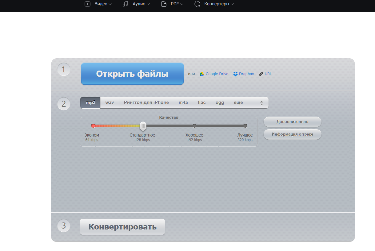 Как устроен интерфейс Online Audio Converter