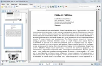 После запуска пользователя встречает лаконичный интерфейс в классическом стиле Windows. Основное окно разделено на три области: панель инструментов, область навигации (для закладок и миниатюр страниц) и центральное рабочее поле для отображения документа.