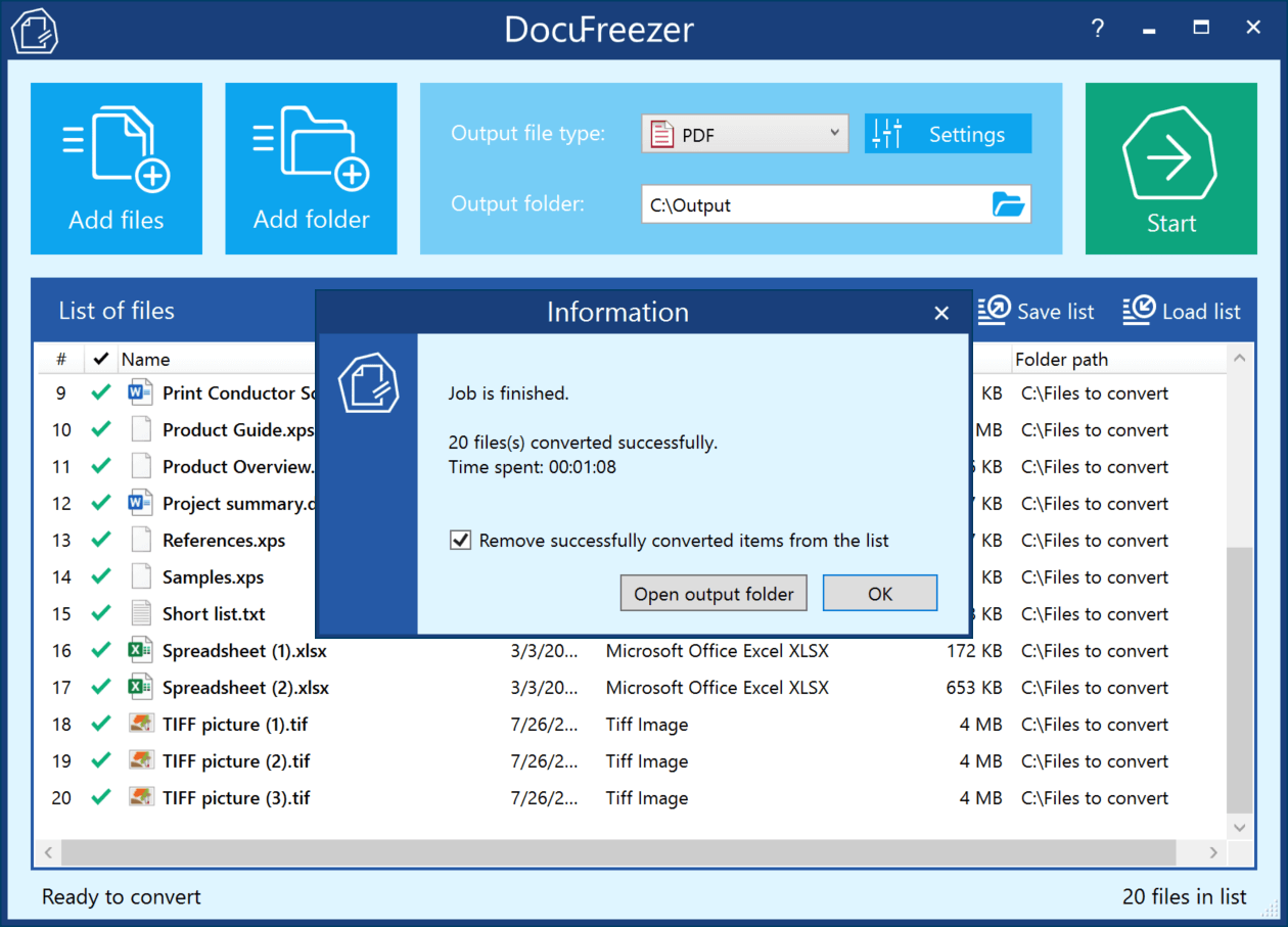 - DocuFreezer позволяет конвертировать сразу целые папки, а не отдельные файлы.
