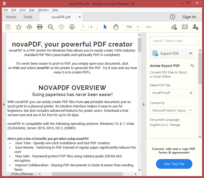 - Adobe Acrobat — это комплексный PDF-редактор, в то время как novaPDF ориентирована на генерацию и защиту файлов.