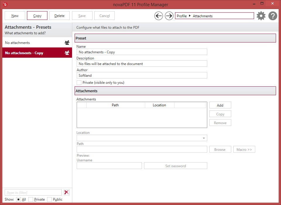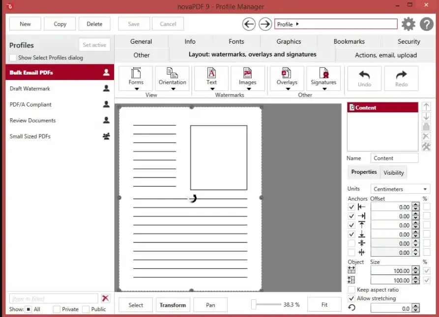 - Пользовательские профили novaPDF позволяют сохранять уникальные параметры для разных проектов.