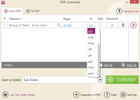 - Главное окно. Содержит два режима: «Из PDF» и «В PDF». Первый используется для преобразования PDF в другие форматы, второй — для создания PDF-документов из различных файлов.