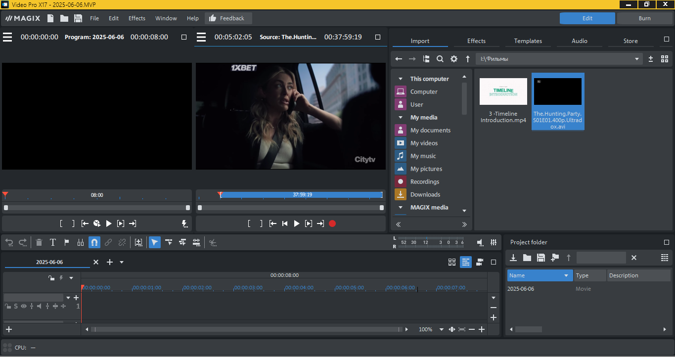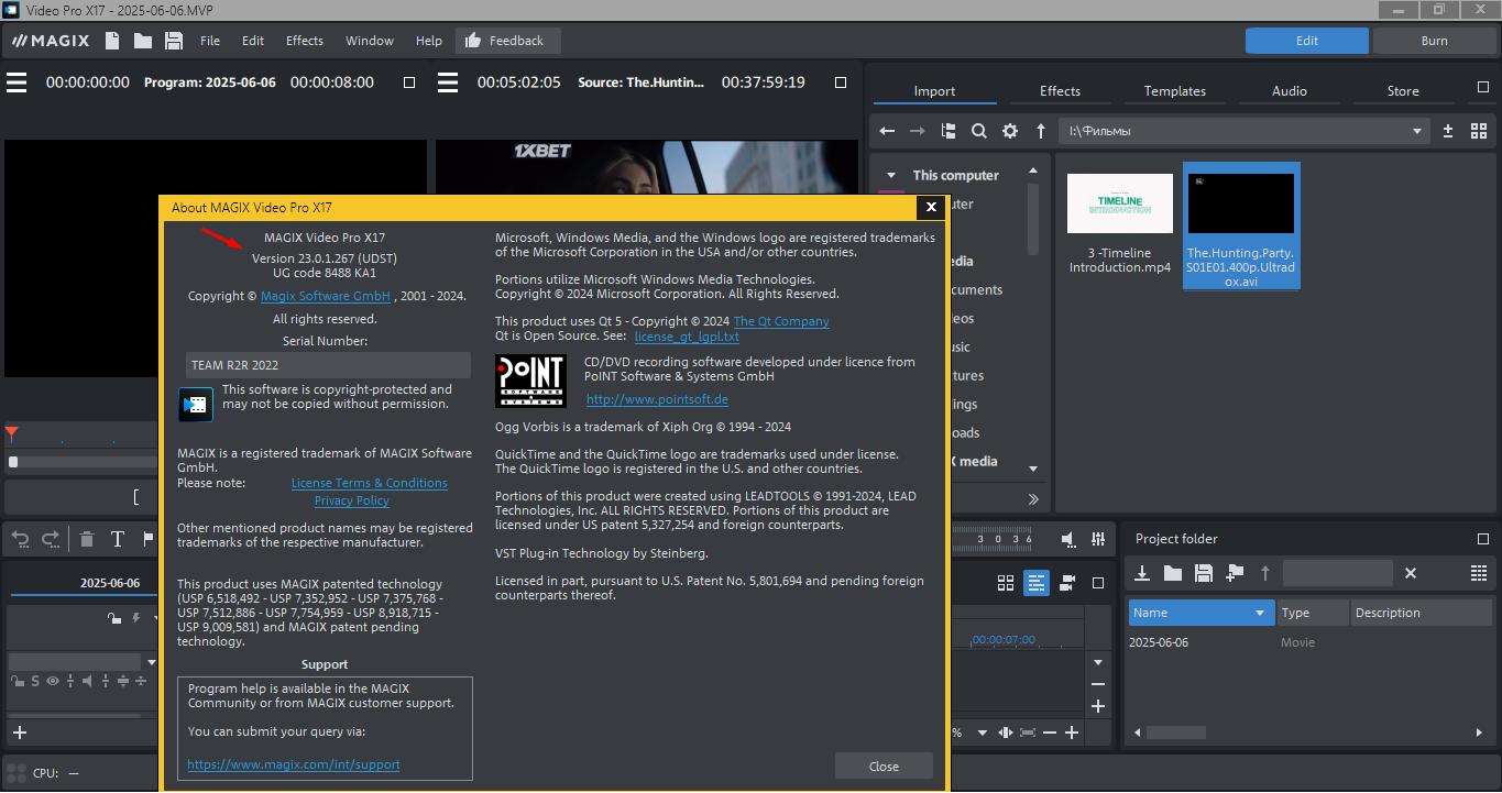 MAGIX Video Pro X17 23.0.1.267 Full + активация — мощный профессиональный видеоредактор с полностью разблокированной лицензией, мультиязычным интерфейсом (русский отсутствует) и установкой под Windows 10/11. Программа построена на новейшем движке INFUSION Engine 3, который обеспечивает идеально плавное воспроизведение и монтаж даже 8K UltraHD-видео в реальном времени благодаря полной аппаратной поддержке Intel Quick Sync, NVIDIA NVENC и AMD VCE. Video Pro X17 предлагает неограниченное количество дорожек, точный трёхточечный монтаж, профессиональную цветокоррекцию с 10-битным HDR, Look-Up Tables, кривыми и колесами цвета, стабилизацию изображения proDAD Mercalli V6, многокамерный монтаж до 32 источников, хромакей, замедление с оптическим потоком, встроенный аудиоредактор с поддержкой VST-плагинов, экспорт в любой формат с аппаратным ускорением и создание дисков Blu-ray/DVD. Благодаря интуитивно понятному интерфейсу и огромному набору премиум-эффектов от NewBlue, HitFilm и iZotope программа идеально подходит как для опытных видеографов, так и для тех, кто хочет профессиональный результат без сложного обучения — монтаж свадеб, клипов, YouTube-контента и короткометражек происходит быстро, качественно и с минимальной нагрузкой на систему.