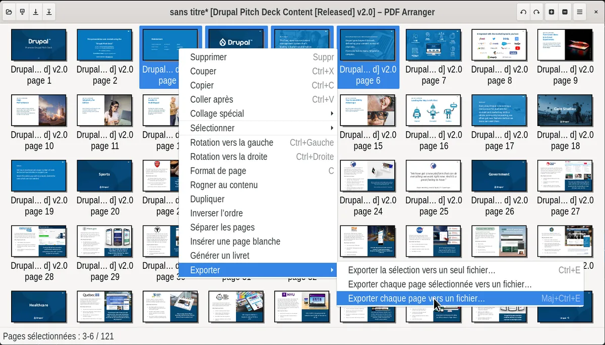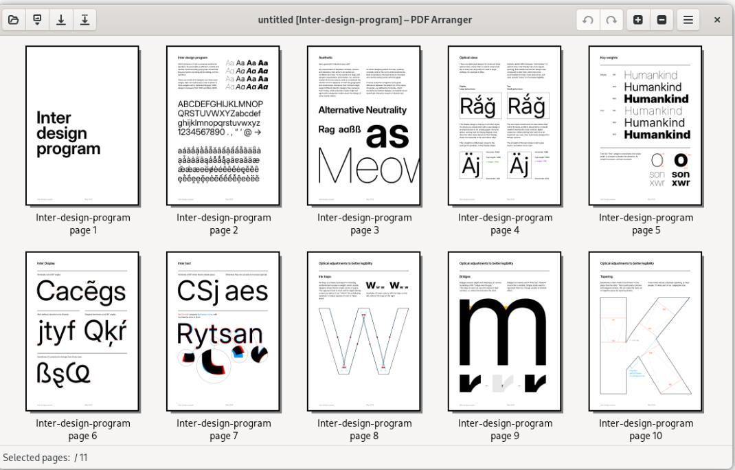Одна из ключевых функций PDF Arranger — изменение порядка страниц с помощью мыши. Пользователь может выделить несколько страниц и перетащить их в нужное место, мгновенно изменив структуру документа. Изменения отображаются в режиме реального времени, без необходимости пересохранения файла.