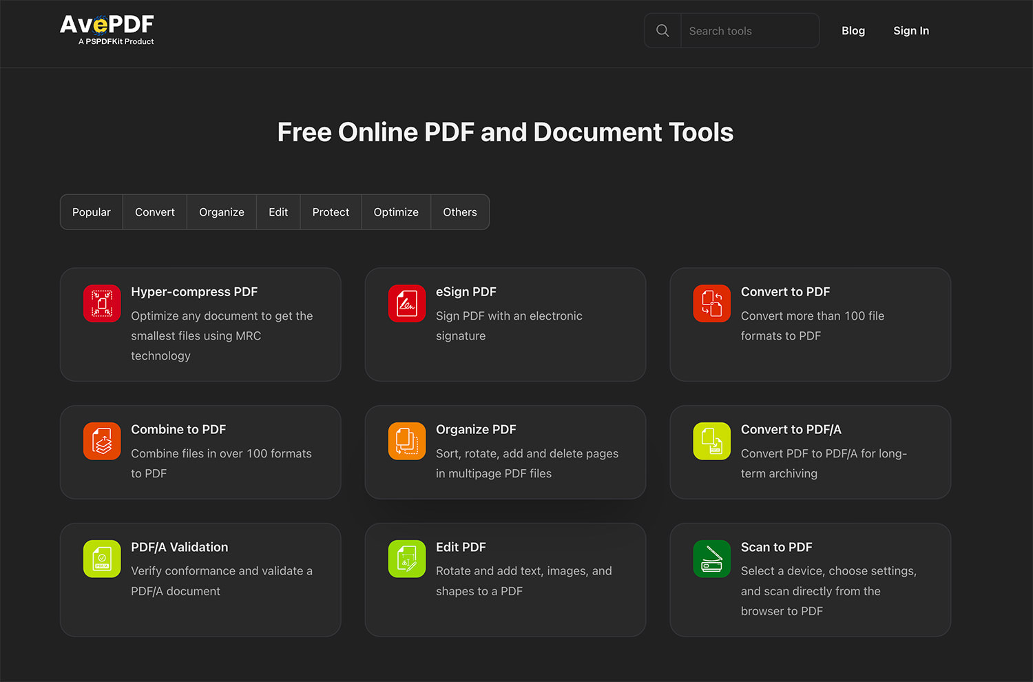 AvePDF — это современный онлайн-сервис для редактирования, конвертации, сжатия и защиты PDF-файлов, разработанный компанией ORPALIS, известной своими профессиональными решениями для обработки документов. AvePDF объединяет десятки инструментов в едином интерфейсе и работает полностью через браузер, без необходимости установки программ на компьютер.