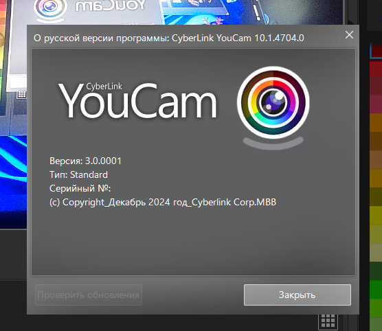 CyberLink YouCam 10.1.4704.0 Full + русификатор от VLAD123MBB=xxMBBxx — мощная программа для работы с веб-камерой, позволяющая записывать HD-видео в H.264, применять в реальном времени сотни динамических эффектов, анимированных аватаров, фильтров, искажений, частиц и рамок, вести видеочаты с креативными масками и фоновой заменой, создавать видео-презентации и скринкасты рабочего стола, входить в Windows и сайты по лицу (Face Login), автоматически блокировать ПК при уходе (Face-out), делать панорамные снимки, HDR-фото, серийную съёмку и редактировать изображения с помощью рамок, обрезки, вращения и рисования. Полностью русифицированный интерфейс (русификатор от VLAD123MBB именно под эту версию), двухрежимный UI для простоты использования, поддержка сенсорных устройств и мгновенная отправка фото/видео по email или на YouTube делают YouCam идеальным инструментом для развлекательных видеочатов, онлайн-уроков, стримов и креативных селфи.