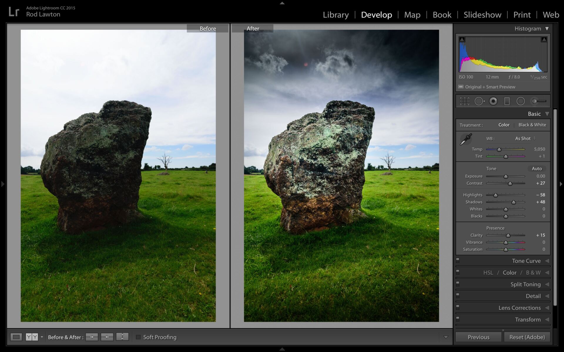 Lightroom также поддерживает цветовые профили ICC и DCP, а система Soft Proofing помогает оценить, как снимок будет выглядеть после печати. Пользователь может сравнивать экранную и печатную версии, регулируя цветовой охват и яркость.