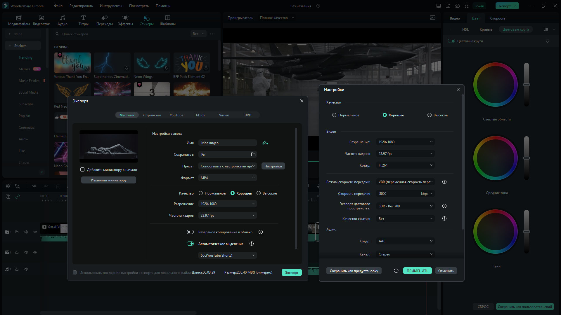- Полное завершение по сообщению «Wondershare Filmora END OF WORK»