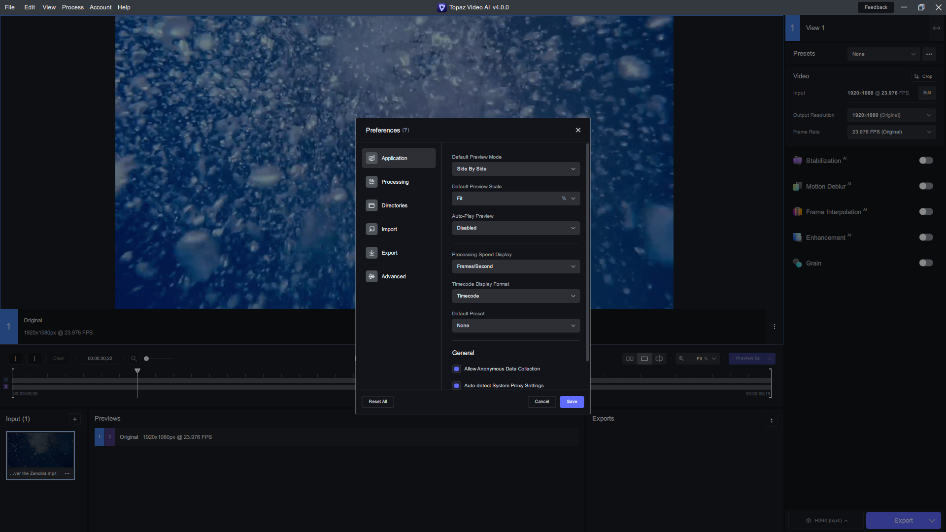 Topaz Video AI предлагает модели Artemis, Proteus, Iris, Gaia, Nyx, Apollo, Theia для разных задач: апскейлинг, деинтерлейсинг, удаление шумов, восстановление лиц, сверхплавное замедление и ночные съёмки с улучшенной детализацией.