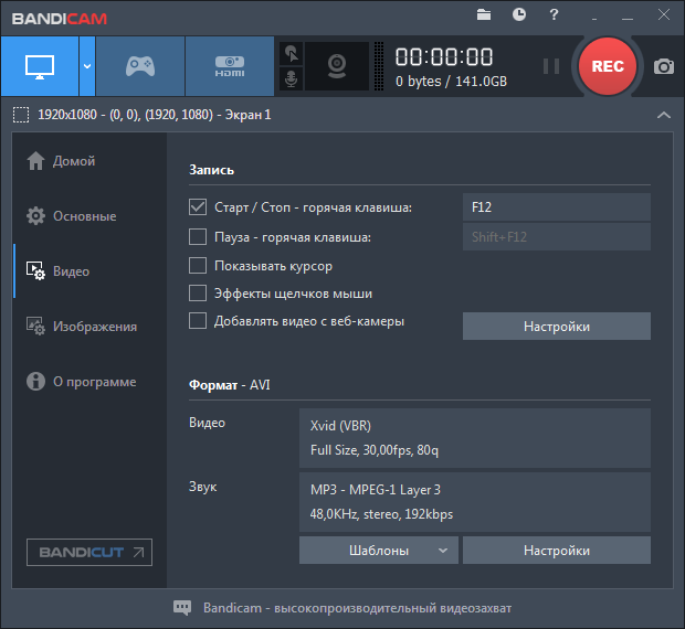 - Сайт разработчика: bandicam.com