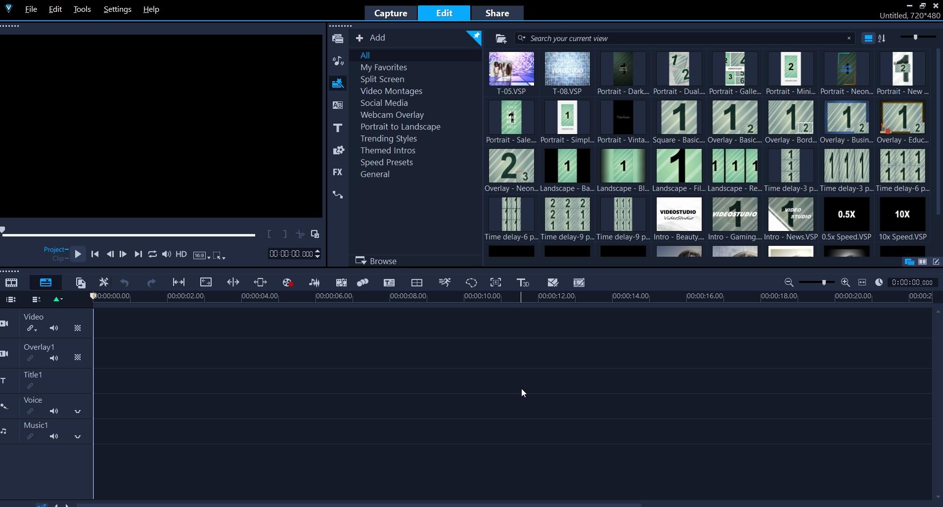 Включает эксклюзивные плагины NewBlueFX, Boris FX, proDAD, стабилизацию Mercalli, разделённый экран, хромакей, запись экрана MultiCam Capture Lite и более 2000 переходов/фильтров.