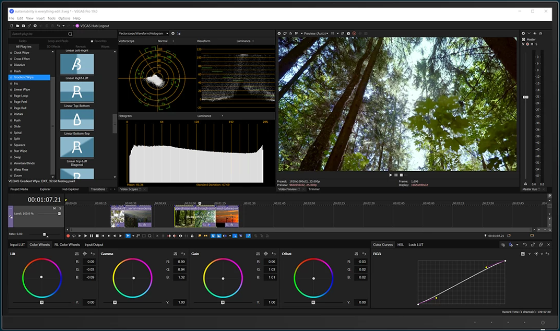 Программа предлагает чрезвычайно гибкий интерфейс, библиотеку VEGAS Prepare для управления медиа, автоматическую настройку под вашу видеокарту, вектороскоп с линией тона кожи, логарифмическую экспозицию, плагины OFX/VST и экспорт в любые форматы, включая 8K и прямой постинг в соцсети.