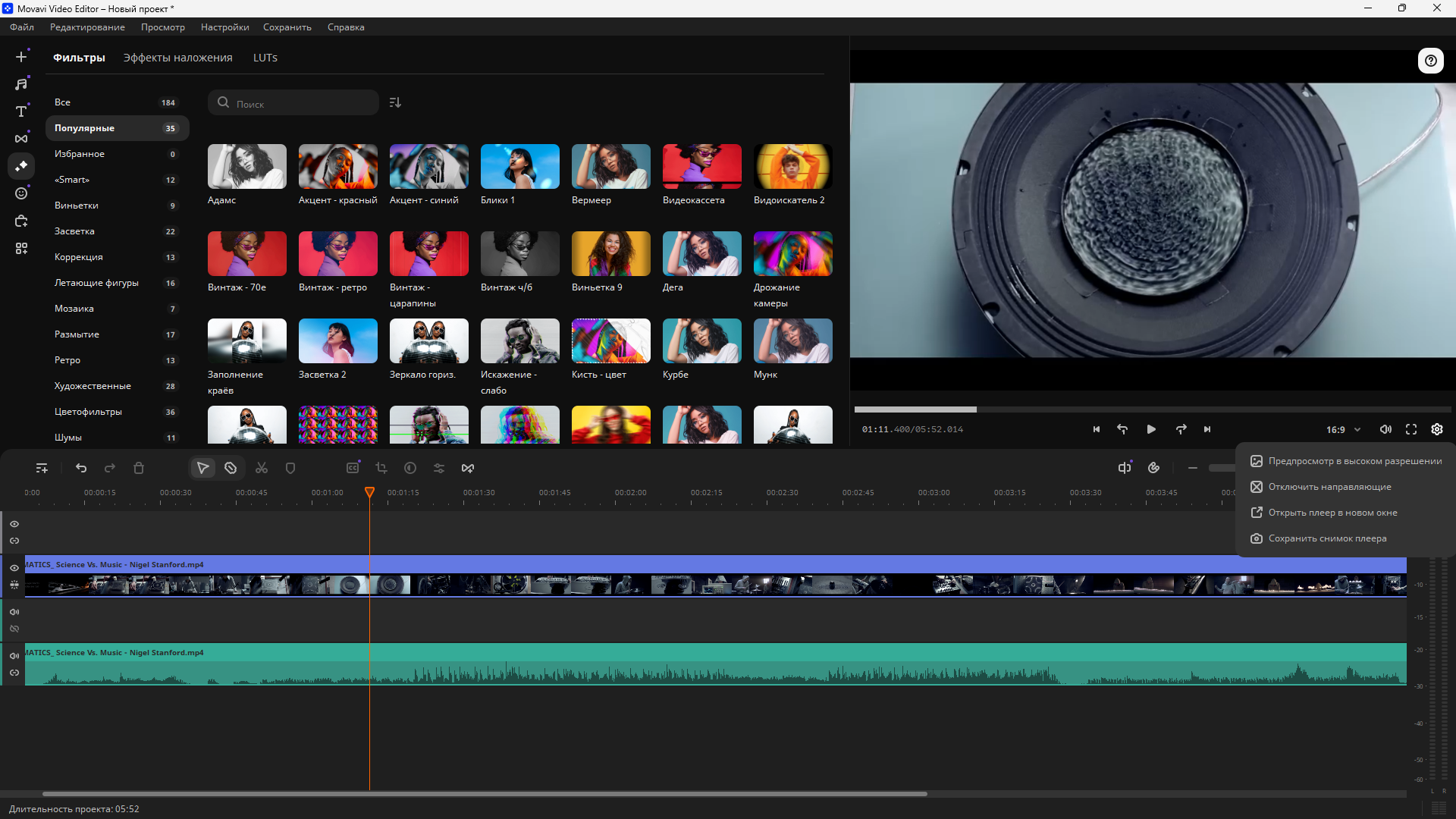 Movavi Video Editor 2025 25.9.0 Portable — мощный, но удивительно простой русскоязычный видеоредактор для домашнего и полупрофессионального монтажа, позволяющий за минуты создавать яркие ролики, влоги, семейные фильмы, клипы для TikTok, YouTube, Instagram и VK с помощью ИИ-инструментов: автосубтитры в один клик, мгновенная примерка эффектов, умное удаление фона без зелёного экрана, интеллектуальное шумоподавление, отслеживание движения, 13 режимов наложения, профессиональной цветокоррекции, анимированных эффектов наложения (молнии, огонь, взрывы), сотен фильтров, переходов, титров, стикеров, интро, стабилизации, записи экрана и веб-камеры.