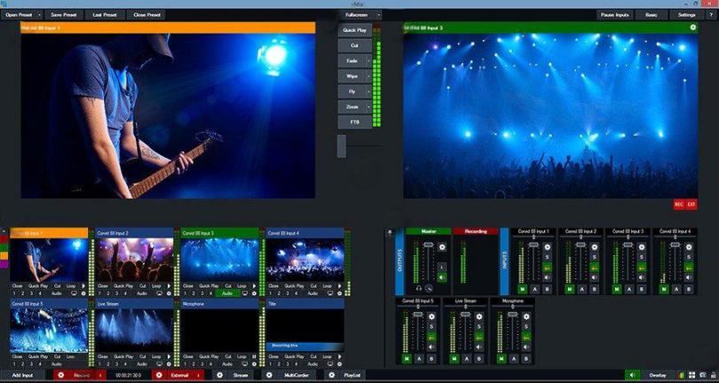 Программа позволяет одновременно выводить сигнал на несколько устройств, записывать ISO всех источников, создавать Instant Replay, работать с объёмным звуком, добавлять эффекты, титры, логотипы и проводить живые трансляции на YouTube, Facebook, Twitch с низкой задержкой.
