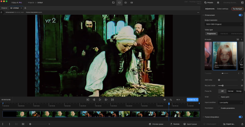 Программа использует продвинутые модели ИИ, обученные на миллионах кадров, чтобы восстанавливать текстуры, устранять шумы, добавлять плавность движения и повышать разрешение без потери естественности и артефактов.