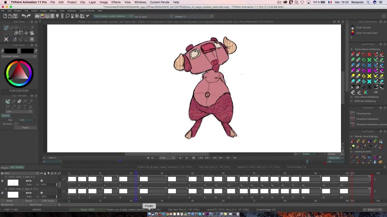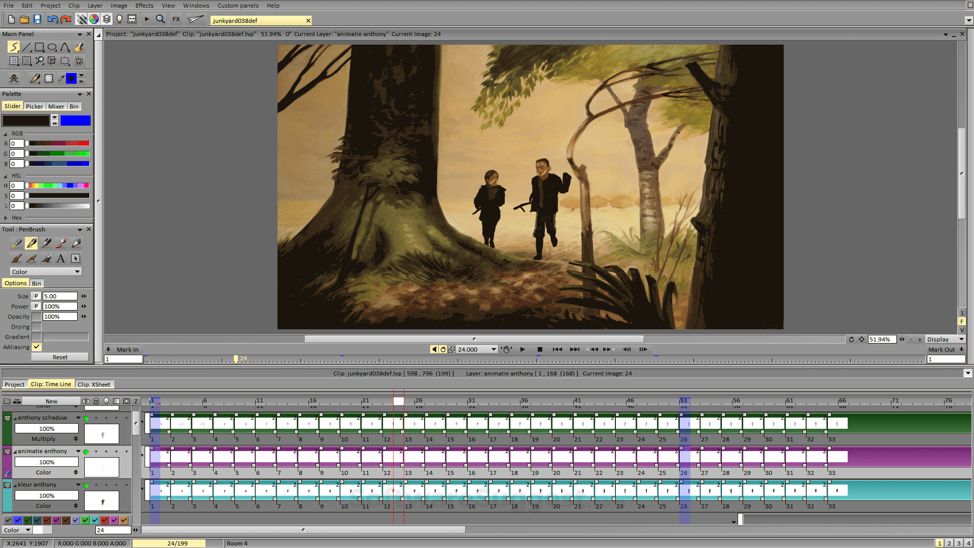 Процесс работы с TVPaint был интуитивно понятен и приближен к профессиональным графическим редакторам: