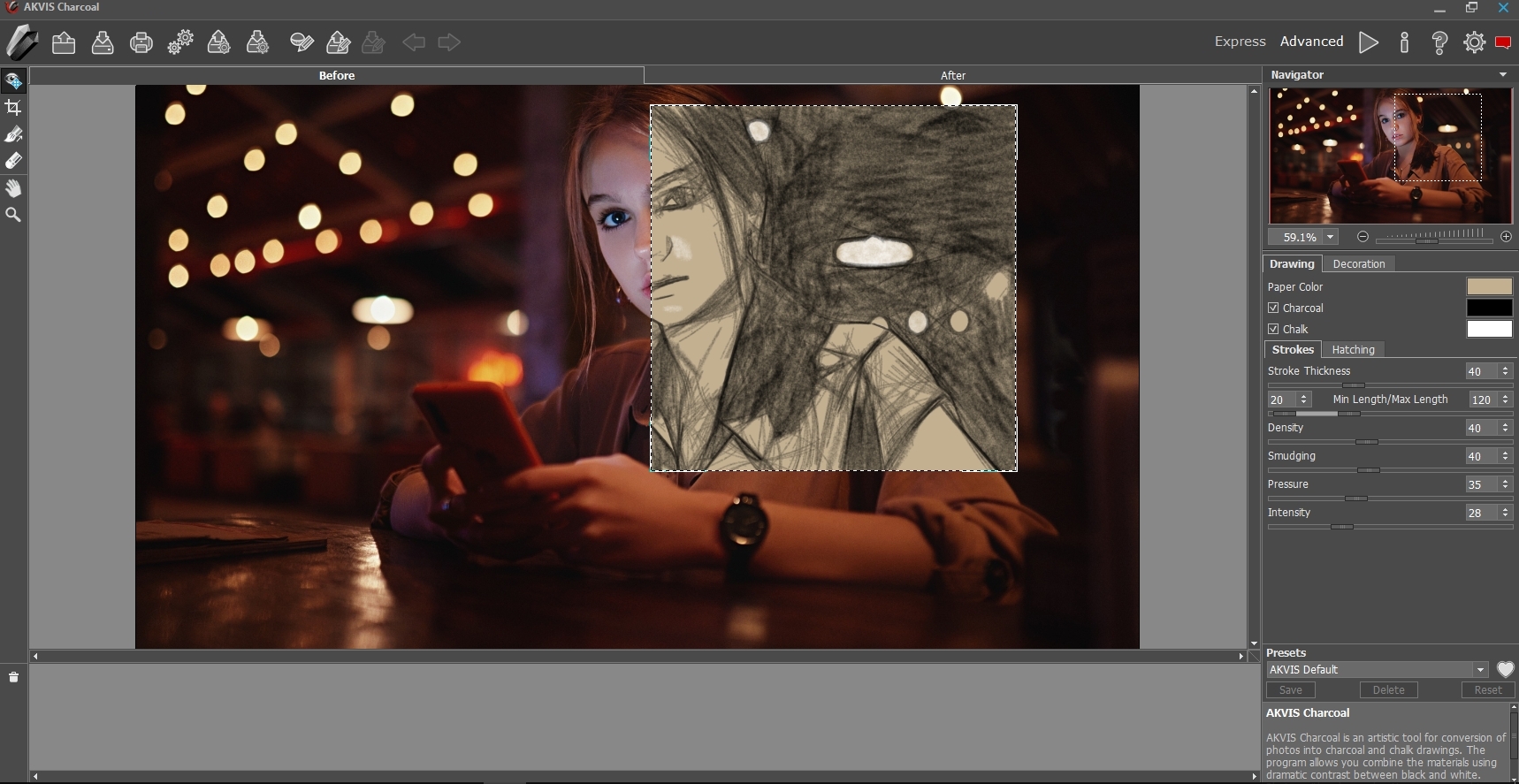 - AKVIS Charcoal v.6.0: Преобразует снимки в рисунки углем и мелом.