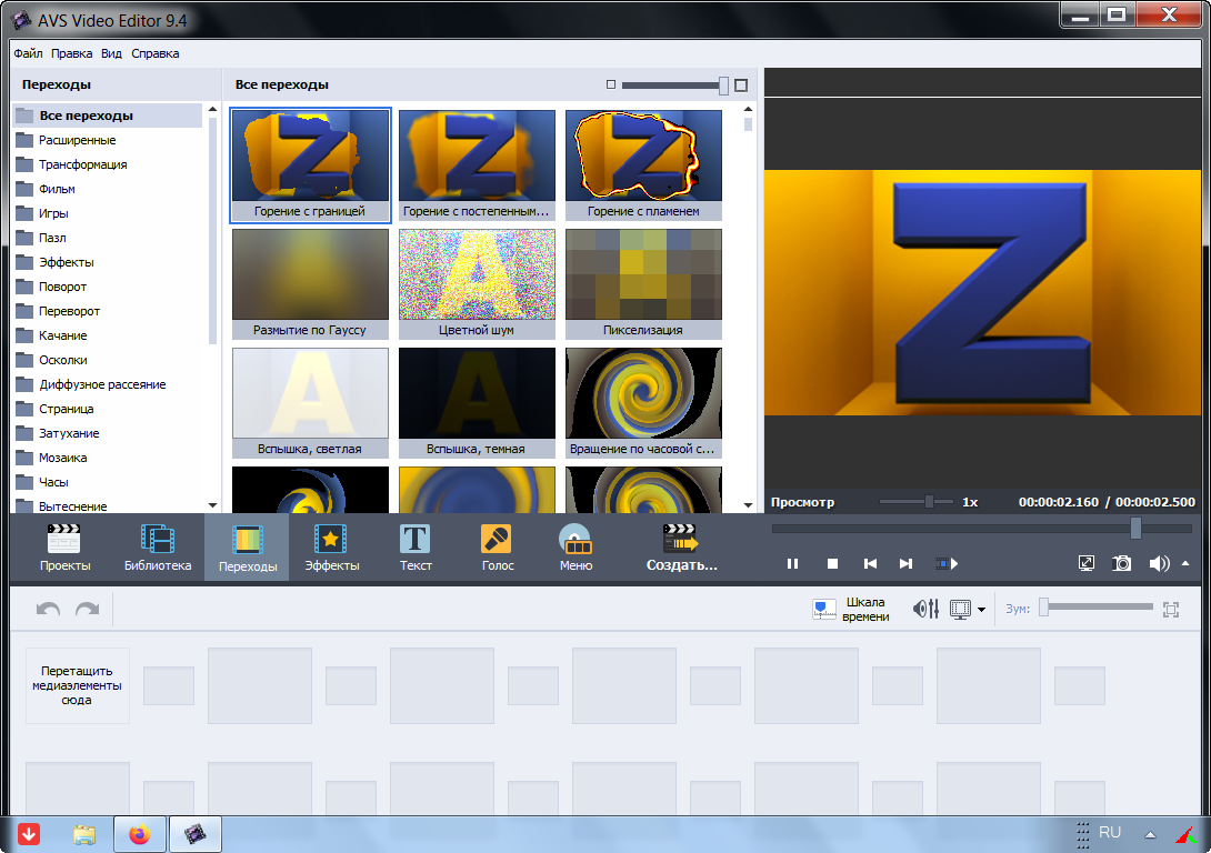 AVS Video Editor 9.4.3.372 — полнофункциональный редактор видео 2020 года с русским интерфейсом, предназначенный для создания профессиональных фильмов, слайд-шоу и дисков DVD/Blu-ray из любого источника: видеокамер, TV-тюнеров, веб-камер, экрана компьютера и файлов любых форматов.