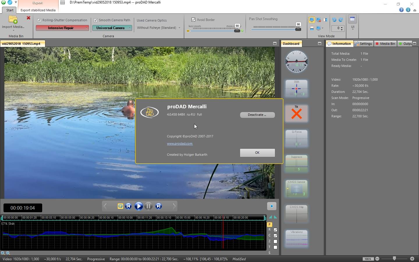 proDAD Mercalli V4 SAL+ 4.0.458.1 Standalone — самая мощная версия 2018 года легендарного программного стабилизатора видео, способная устранять любую тряску, вибрацию, Rolling-Shutter и CMOS-искажения даже в самых сложных роликах с рук, дронов, экшн-камер и автомобильных регистраторов.