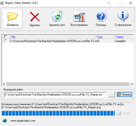 - Repair Video Master 2.61 — восстановление повреждённых видео (AVI, MP4, MOV, MPEG)