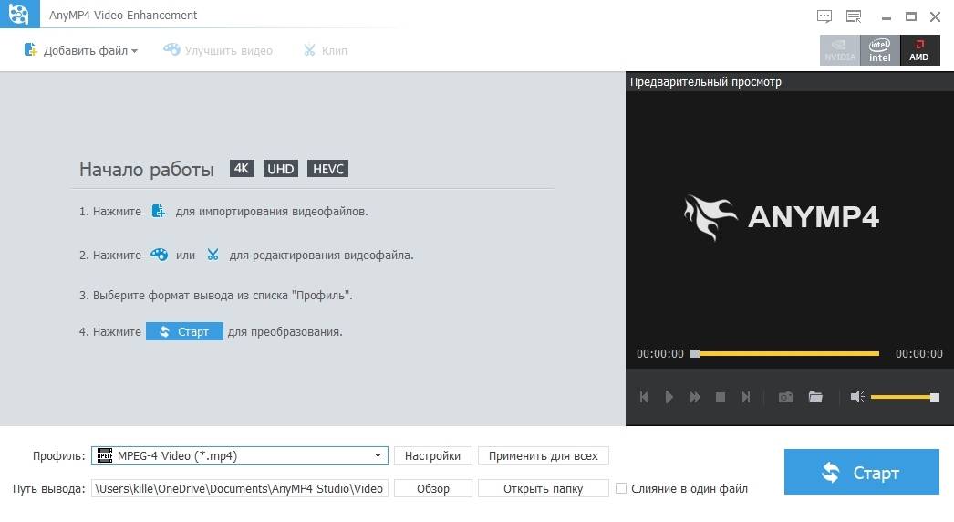 AnyMP4 Video Enhancement 7.2.12 — универсальный инструмент 2017 года для повышения качества видео любого формата, автоматического увеличения разрешения до 4K UHD, оптимизации яркости/контрастности, удаления шума, стабилизации дрожания камеры, поворота/отражения, обрезки, добавления водяных знаков и конвертации в 200+ форматов с поддержкой 3D и пресетов для мобильных устройств.