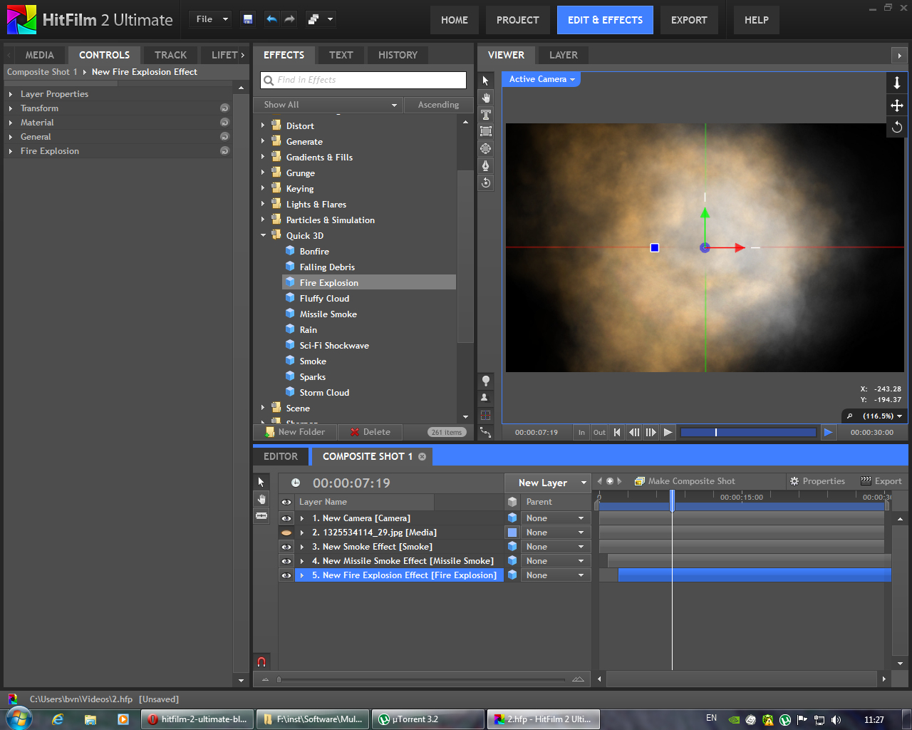 HitFilm Ultimate 2.0.1024 — революционный гибридный редактор 2012 года, объединяющий полноценный нелинейный монтаж и мощный 3D-композитинг, более 150 профессиональных эффектов (частицы, свечения, 3D-экструзия текста, хромакей, стабилизация, цветокоррекция, 3D-модели, огни, взрывы, кровь, молнии, лазеры), интеграцию с Vegas Pro 12 и прямой экспорт на YouTube.