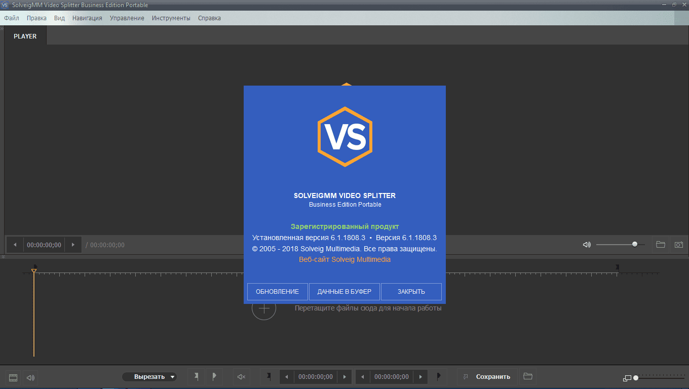 SolveigMM Video Splitter Business Edition 6.1.1811.15 — профессиональный редактор 2018 года для сверхбыстрой и безпотерьной резки, склейки и вырезки фрагментов из видео/аудио файлов MPEG-2, AVI, WMV, ASF, MP4, MKV, MOV, AVCHD, WEBM, FLV, MP3, WMA с покадровой точностью (для большинства форматов) и K-frame/GOP точностью (для FLV), сохранением 99% исходных данных без перекодирования и полной синхронизацией видео/аудио.
