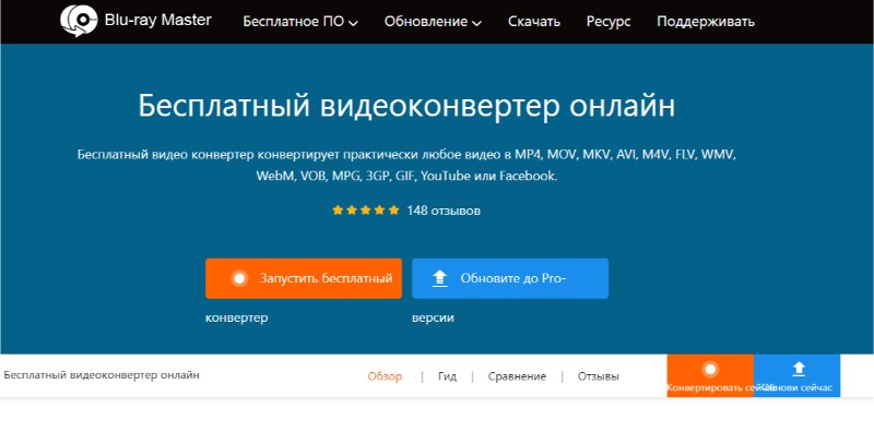 Blu-ray Master Free Video Converter — онлайн-сервис для конвертации видео и аудио, который работает через небольшой лаунчер. Он поддерживает более 30 форматов, включая AVI, MKV, MP4, MOV, FLV, WMV, а также ряд аудиодорожек. Решение ориентировано на пользователей, которые не хотят ставить тяжёлые программы, но готовы один раз установить легкий модуль запуска.