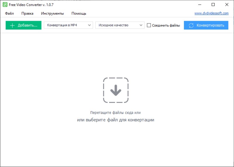 - 1. Запуск программы. Откройте DVDVideoSoft Free Video Converter и дождитесь появления главного окна.